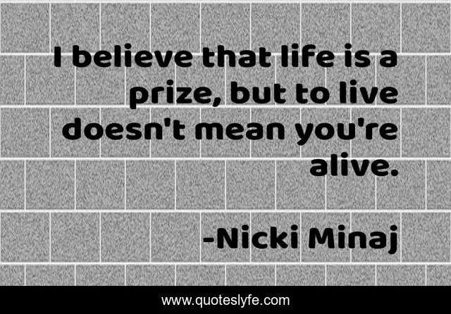 This page presents the quote "I believe that life is a prize, but to live doesn't mean you're alive.". Author of this quote is Nicki Minaj. This quote is about enthusiasm, inspirational,.