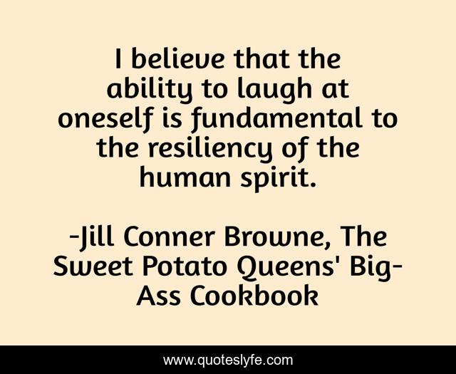 This page presents the quote "I believe that the ability to laugh at oneself is fundamental to the resiliency of the human spirit.". Author of this quote is Jill Conner Browne, The Sweet Potato Queens' Big-Ass Cookbook. This quote is about laugh-at-yourself, human-spirit, laughter,.