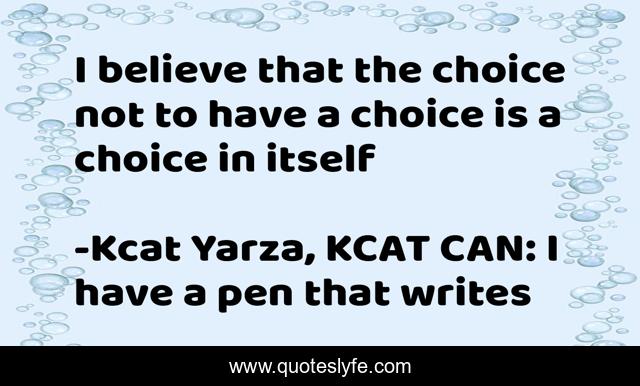 "Kcat Yarza, KCAT CAN: I have a pen that writes Quotes." Quoteslyfe.com, 2025. Sat. 06 Dec. 2025. <https://www.quoteslyfe.com/quote/I-believe-that-the-choice-not-to-184636>.