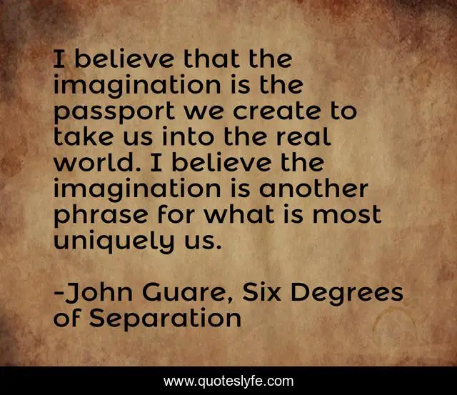 "John Guare, Six Degrees of Separation Quotes." Quoteslyfe.com, 2025. Fri. 05 Dec. 2025. <https://www.quoteslyfe.com/quote/I-believe-that-the-imagination-is-the-7969>.
