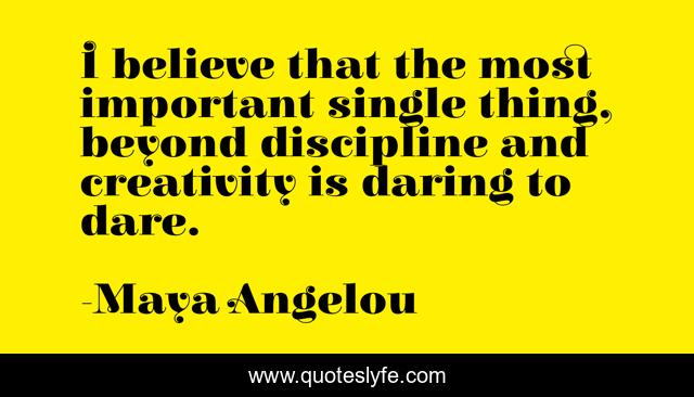 This page presents the quote "I believe that the most important single thing, beyond discipline and creativity is daring to dare.". Author of this quote is Maya Angelou. This quote is about courage, bravery,.