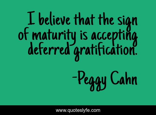 This page presents the quote "I believe that the sign of maturity is accepting deferred gratification.". Author of this quote is Peggy Cahn. .