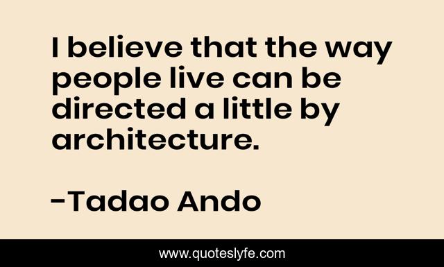 This page presents the quote "I believe that the way people live can be directed a little by architecture.". Author of this quote is Tadao Ando. This quote is about i believe, believe, people,.