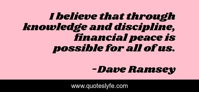 This page presents the quote "I believe that through knowledge and discipline, financial peace is possible for all of us.". Author of this quote is Dave Ramsey. This quote is about believe, peace, finance,.