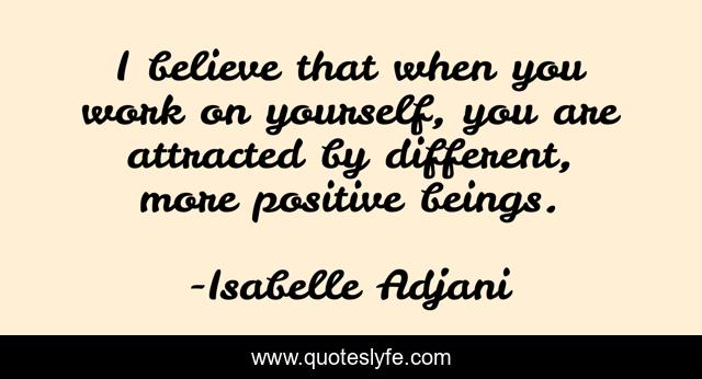 This page presents the quote "I believe that when you work on yourself, you are attracted by different, more positive beings.". Author of this quote is Isabelle Adjani. This quote is about work, believe, yourself,.