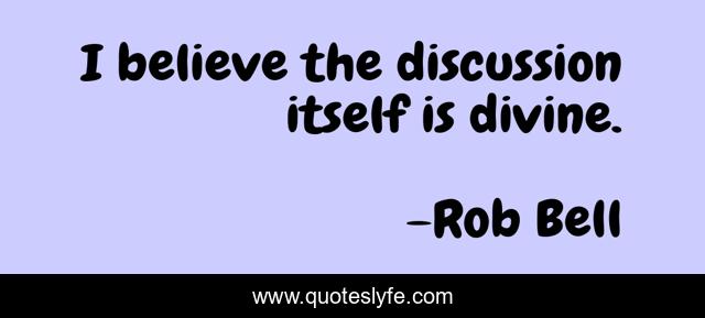 This page presents the quote "I believe the discussion itself is divine.". Author of this quote is Rob Bell. This quote is about religion, christianity, theology,.