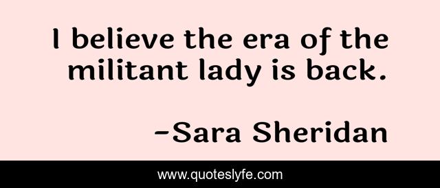 "Sara Sheridan Quotes." Quoteslyfe.com, 2025. Mon. 08 Dec. 2025. <https://www.quoteslyfe.com/quote/I-believe-the-era-of-the-militant-102141>.