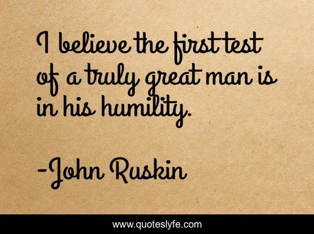 This page presents the quote "I believe the first test of a truly great man is in his humility.". Author of this quote is John Ruskin. This quote is about believe, man, humility,.