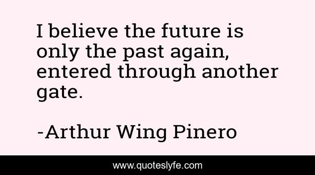 This page presents the quote "I believe the future is only the past again, entered through another gate.". Author of this quote is Arthur Wing Pinero. This quote is about past, i believe, believe,.