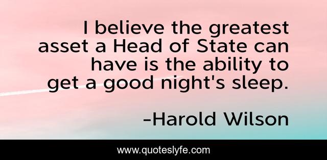 This page presents the quote "I believe the greatest asset a Head of State can have is the ability to get a good night's sleep.". Author of this quote is Harold Wilson. This quote is about rule, government,.