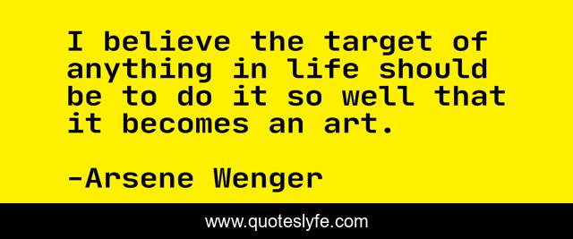 This page presents the quote "I believe the target of anything in life should be to do it so well that it becomes an art.". Author of this quote is Arsene Wenger. This quote is about i believe, life, believe,.