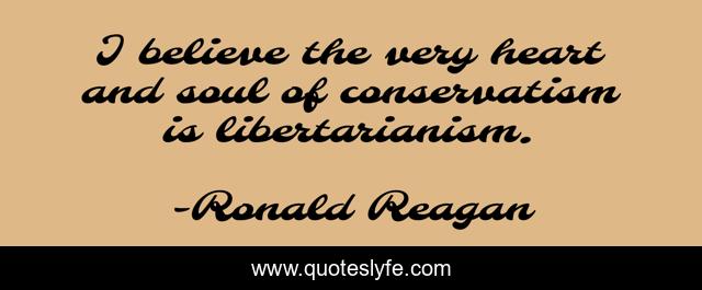 This page presents the quote "I believe the very heart and soul of conservatism is libertarianism.". Author of this quote is Ronald Reagan. This quote is about libertarian, conservative,.