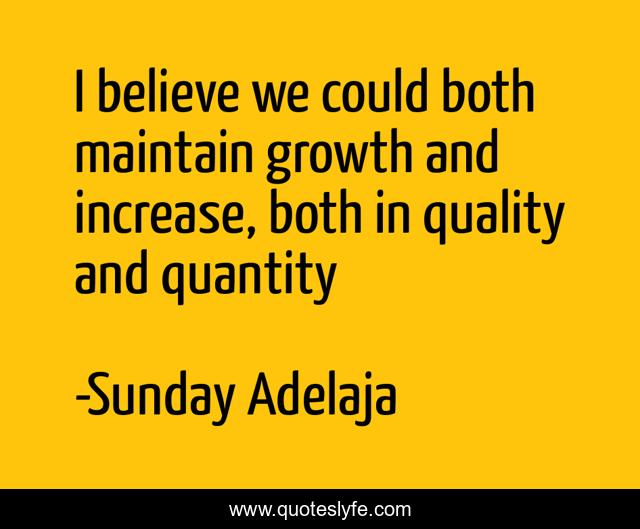 This page presents the quote "I believe we could both maintain growth and increase, both in quality and quantity". Author of this quote is Sunday Adelaja. This quote is about both, increase, maintain, growth, believe, quality, quantity,.