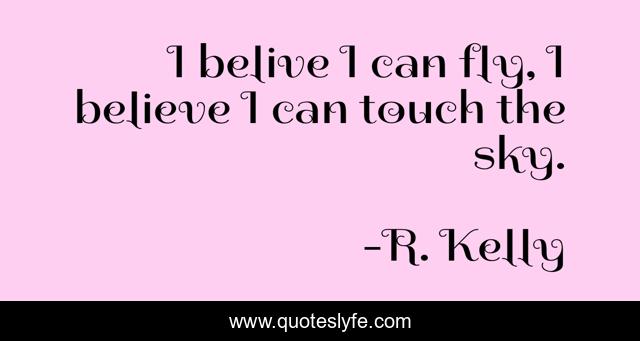 This page presents the quote "I belive I can fly, I believe I can touch the sky.". Author of this quote is R. Kelly. This quote is about enthusiasm, dreams, inspirational,.
