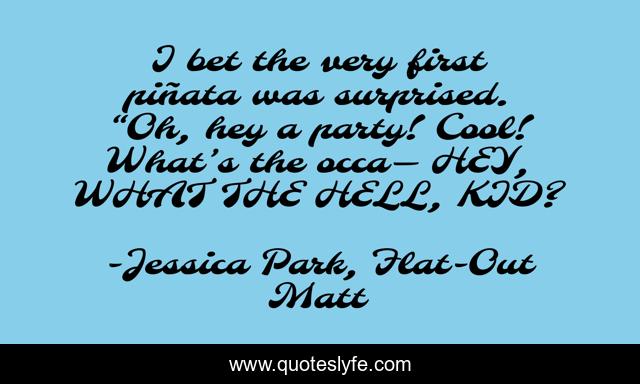 This page presents the quote "I bet the very first piñata was surprised. “Oh, hey a party! Cool! What’s the occa— HEY, WHAT THE HELL, KID?". Author of this quote is Jessica Park, Flat-Out Matt. This quote is about cute, funny-and-random, hahaha,.