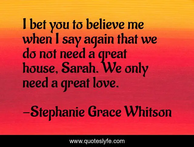 I bet you to believe me when I say again that we do not need a great house, Sarah. We only need a great love.