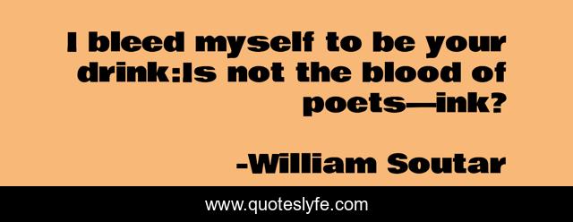 This page presents the quote "I bleed myself to be your drink:Is not the blood of poets—ink?". Author of this quote is William Soutar. .