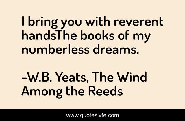 This page presents the quote "I bring you with reverent handsThe books of my numberless dreams.". Author of this quote is W.B. Yeats, The Wind Among the Reeds. This quote is about poetry, dreams,.