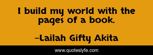 This page presents the quote "I build my world with the pages of a book.". Author of this quote is Lailah Gifty Akita. This quote is about self-study, books, education, reading,.