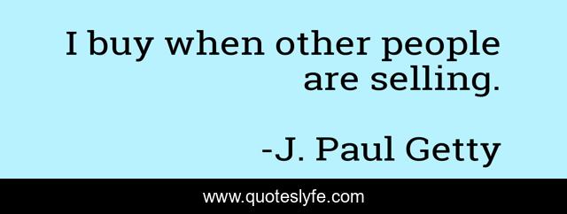 This page presents the quote "I buy when other people are selling.". Author of this quote is J. Paul Getty. This quote is about selling, buy, people,.
