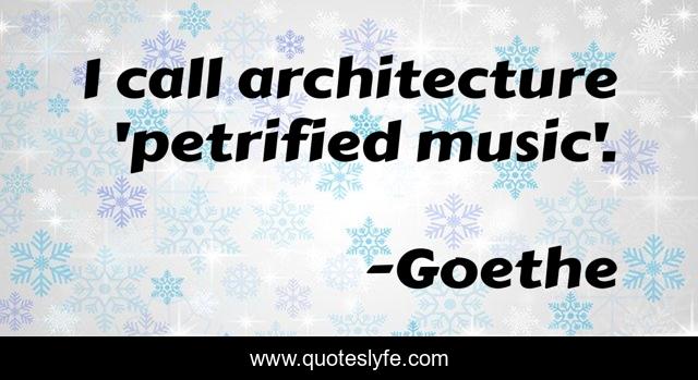 This page presents the quote "I call architecture 'petrified music'.". Author of this quote is Goethe. This quote is about architecture, architects,.