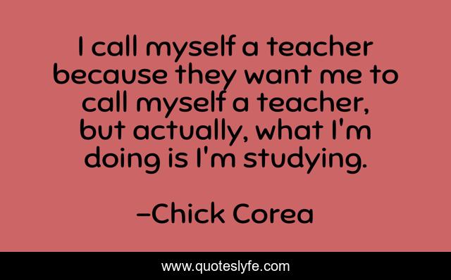 This page presents the quote "I call myself a teacher because they want me to call myself a teacher, but actually, what I'm doing is I'm studying.". Author of this quote is Chick Corea. This quote is about me, studying, myself,.