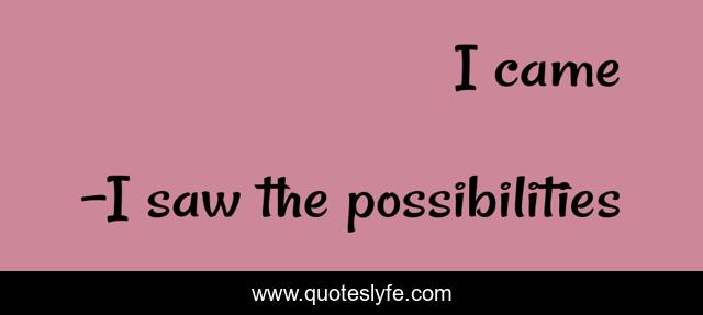 "I saw the possibilities Quotes." Quoteslyfe.com, 2025. Tue. 09 Dec. 2025. <https://www.quoteslyfe.com/quote/I-came-69137>.