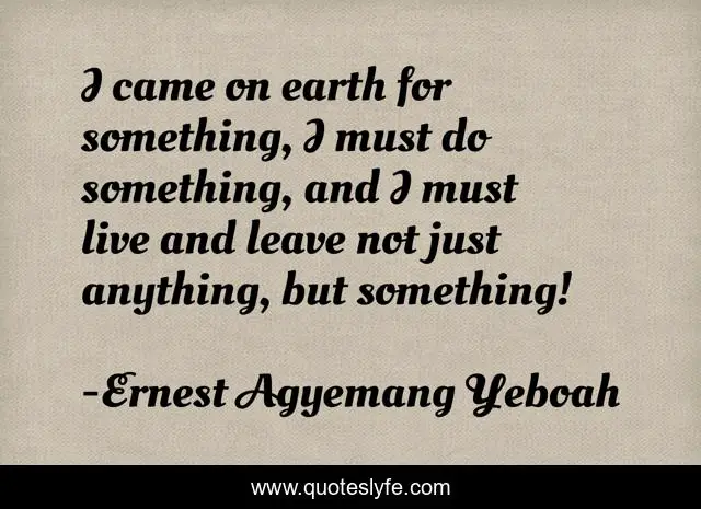 "Ernest Agyemang Yeboah Quotes." Quoteslyfe.com, 2025. Fri. 05 Dec. 2025. <https://www.quoteslyfe.com/quote/I-came-on-earth-for-something-I-160535>.