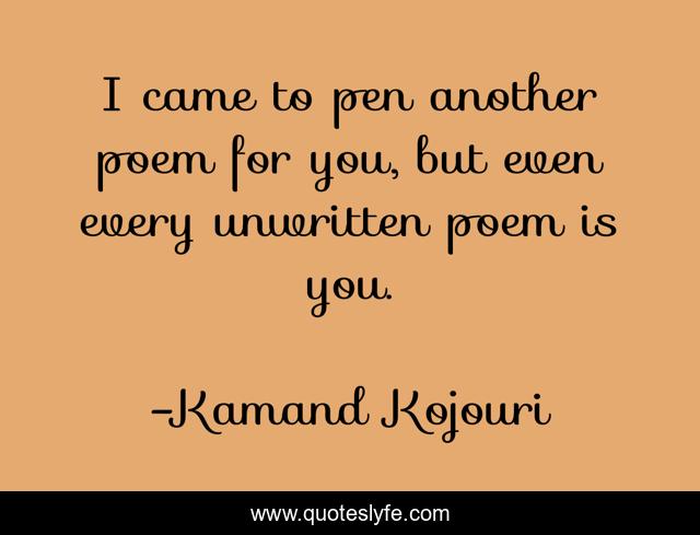 "Kamand Kojouri Quotes." Quoteslyfe.com, 2025. Mon. 08 Dec. 2025. <https://www.quoteslyfe.com/quote/I-came-to-pen-another-poem-for-49552>.