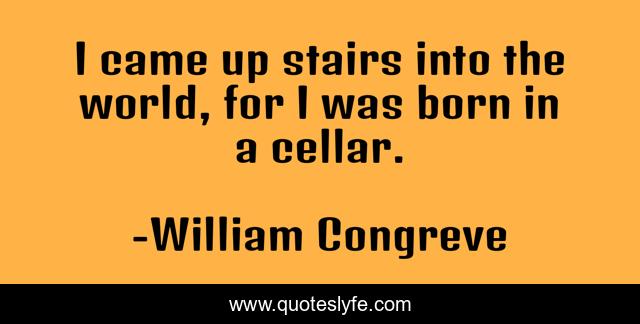 This page presents the quote "I came up stairs into the world, for I was born in a cellar.". Author of this quote is William Congreve. This quote is about regency, play,.
