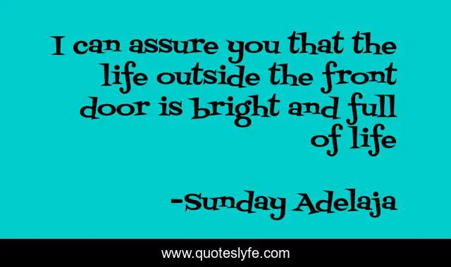 This page presents the quote "I can assure you that the life outside the front door is bright and full of life". Author of this quote is Sunday Adelaja. This quote is about life, door, brightness, front-door, calling, failure, bright, purpose, truth,.