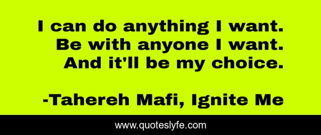 This page presents the quote "I can do anything I want. Be with anyone I want. And it'll be my choice.". Author of this quote is Tahereh Mafi, Ignite Me. .