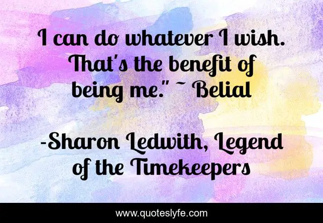This page presents the quote "I can do whatever I wish. That's the benefit of being me." ~ Belial". Author of this quote is Sharon Ledwith, Legend of the Timekeepers. This quote is about ya, fantasy, atlantis, middle-grade-fantasy,.
