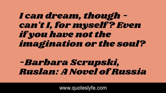 This page presents the quote "I can dream, though - can't I, for myself? Even if you have not the imagination or the soul?". Author of this quote is Barbara Scrupski, Ruslan: A Novel of Russia. This quote is about imagination, dreams,.