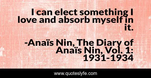 "Anaïs Nin, The Diary of Anaïs Nin, Vol. 1: 1931-1934 Quotes." Quoteslyfe.com, 2025. Mon. 08 Dec. 2025. <https://www.quoteslyfe.com/quote/I-can-elect-something-I-love-and-26962>.