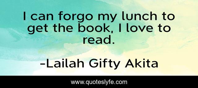 This page presents the quote "I can forgo my lunch to get the book, I love to read.". Author of this quote is Lailah Gifty Akita. This quote is about confidence, read, self-education, motivational, book, optimistic, positive,.