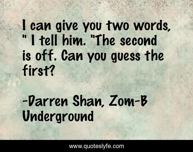 "Darren Shan, Zom-B Underground Quotes." Quoteslyfe.com, 2025. Fri. 05 Dec. 2025. <https://www.quoteslyfe.com/quote/I-can-give-you-two-words-I-210847>.