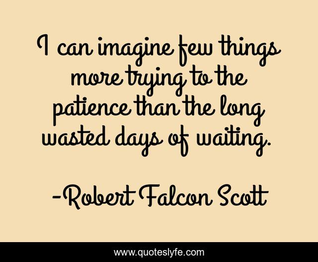 This page presents the quote "I can imagine few things more trying to the patience than the long wasted days of waiting.". Author of this quote is Robert Falcon Scott. This quote is about imagination, waiting, long,.