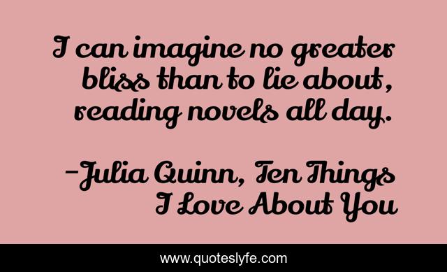 "Julia Quinn, Ten Things I Love About You Quotes." Quoteslyfe.com, 2025. Sat. 06 Dec. 2025. <https://www.quoteslyfe.com/quote/I-can-imagine-no-greater-bliss-than-42838>.