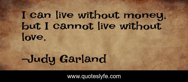 This page presents the quote "I can live without money, but I cannot live without love.". Author of this quote is Judy Garland. This quote is about money, live, i can,.