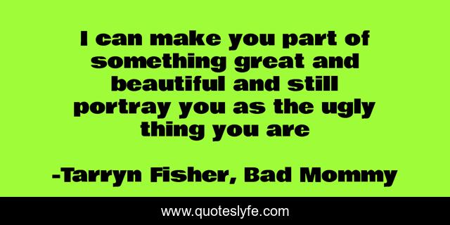 This page presents the quote "I can make you part of something great and beautiful and still portray you as the ugly thing you are". Author of this quote is Tarryn Fisher, Bad Mommy. This quote is about human, life-lessons,.