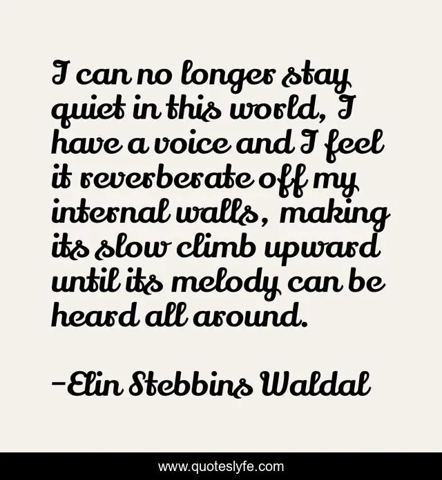 "Elin Stebbins Waldal Quotes." Quoteslyfe.com, 2025. Fri. 05 Dec. 2025. <https://www.quoteslyfe.com/quote/I-can-no-longer-stay-quiet-in-104109>.