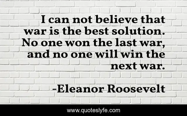 "Eleanor Roosevelt Quotes." Quoteslyfe.com, 2025. Fri. 05 Dec. 2025. <https://www.quoteslyfe.com/quote/I-can-not-believe-that-war-is-285770>.