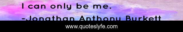 "Jonathan Anthony Burkett Quotes." Quoteslyfe.com, 2025. Sat. 06 Dec. 2025. <https://www.quoteslyfe.com/quote/I-can-only-be-me-158711>.