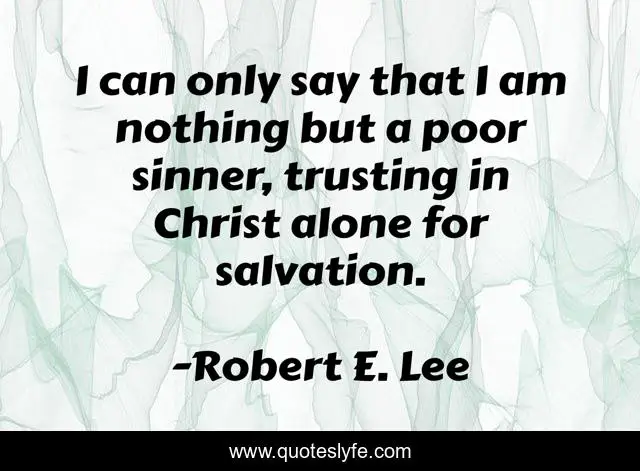 This page presents the quote "I can only say that I am nothing but a poor sinner, trusting in Christ alone for salvation.". Author of this quote is Robert E. Lee. This quote is about faith, religion,.