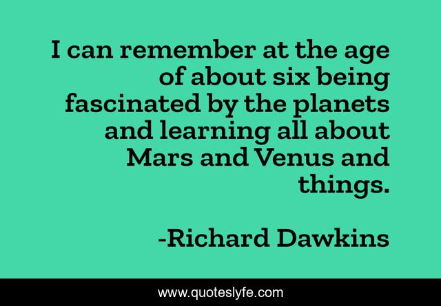 This page presents the quote "I can remember at the age of about six being fascinated by the planets and learning all about Mars and Venus and things.". Author of this quote is Richard Dawkins. This quote is about age, remember, i can,.
