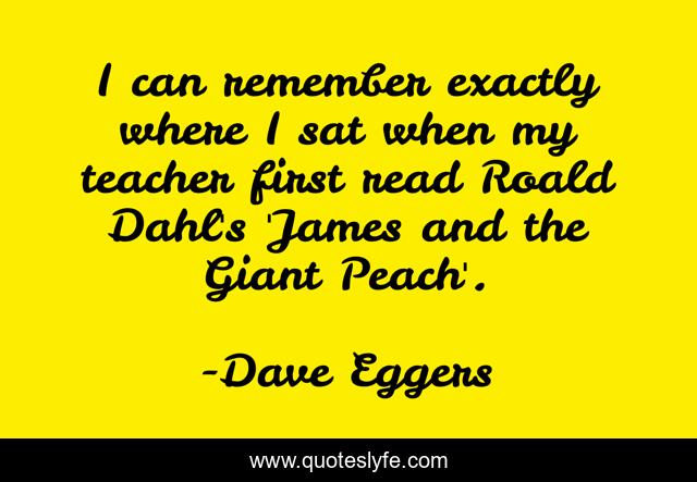 This page presents the quote "I can remember exactly where I sat when my teacher first read Roald Dahl's 'James and the Giant Peach'.". Author of this quote is Dave Eggers. This quote is about remember, i can, first,.