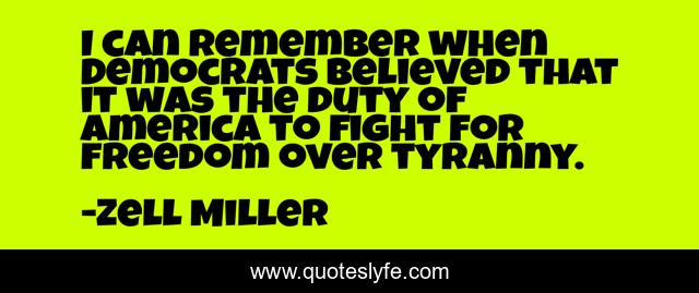 This page presents the quote "I can remember when Democrats believed that it was the duty of America to fight for freedom over tyranny.". Author of this quote is Zell Miller. This quote is about freedom, america, fight,.