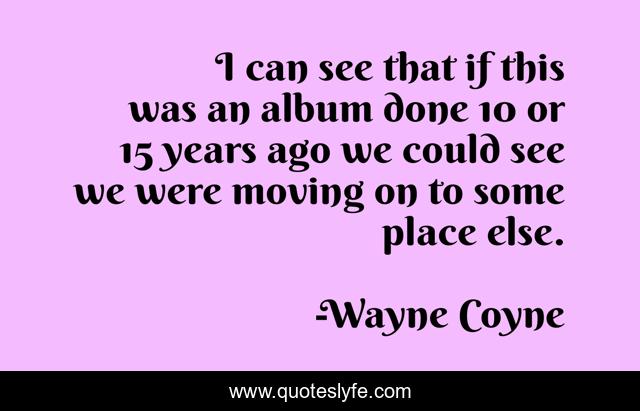 This page presents the quote "I can see that if this was an album done 10 or 15 years ago we could see we were moving on to some place else.". Author of this quote is Wayne Coyne. This quote is about moving, see, place,.
