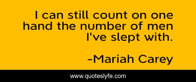 This page presents the quote "I can still count on one hand the number of men I've slept with.". Author of this quote is Mariah Carey. .